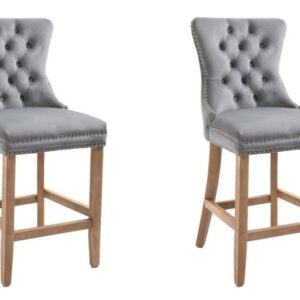 Kacey Stool with Brushed Legs – Grey Velvet (Set of 2)
