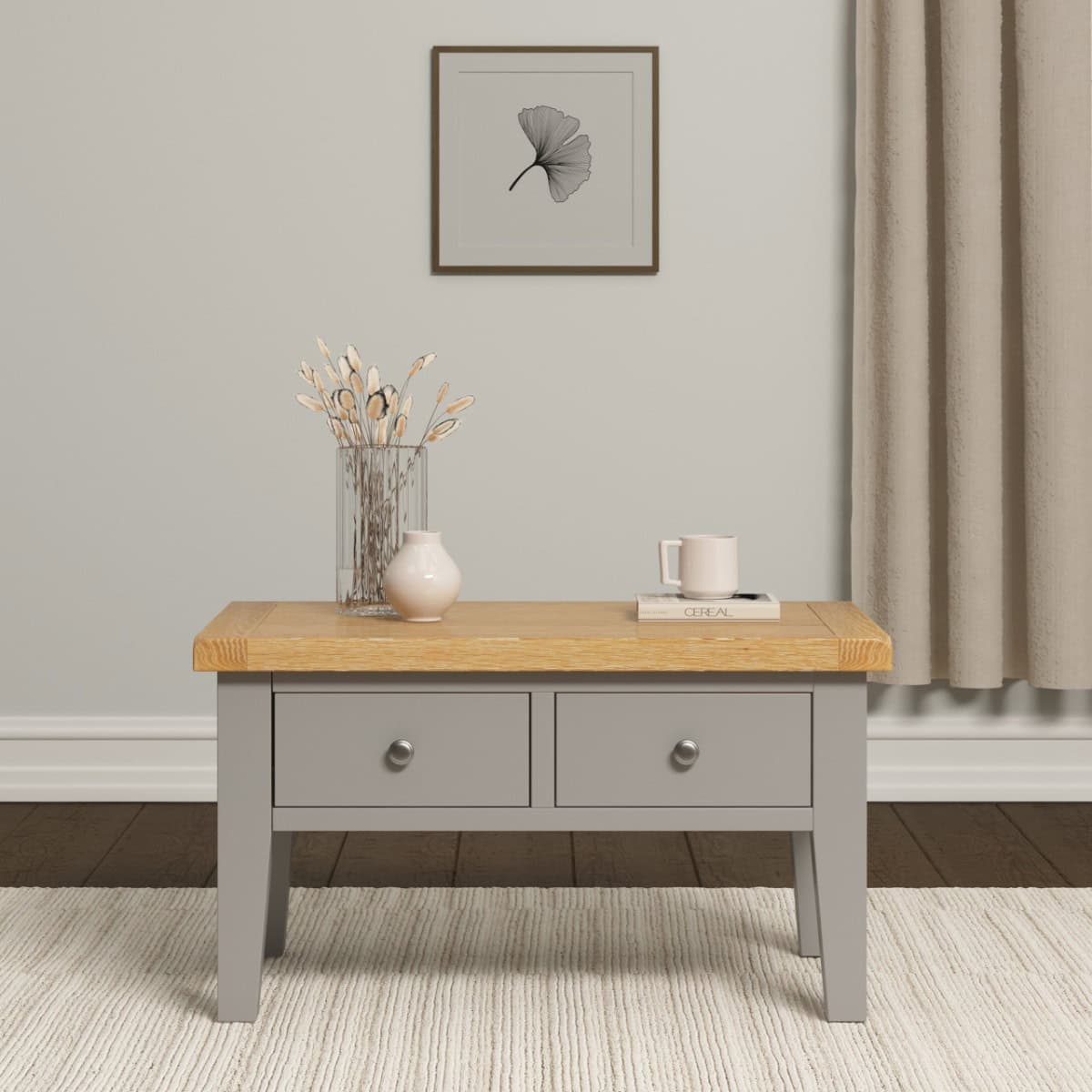 Windsor 2 Drawer Coffee Table – Pebble Grey & Oak