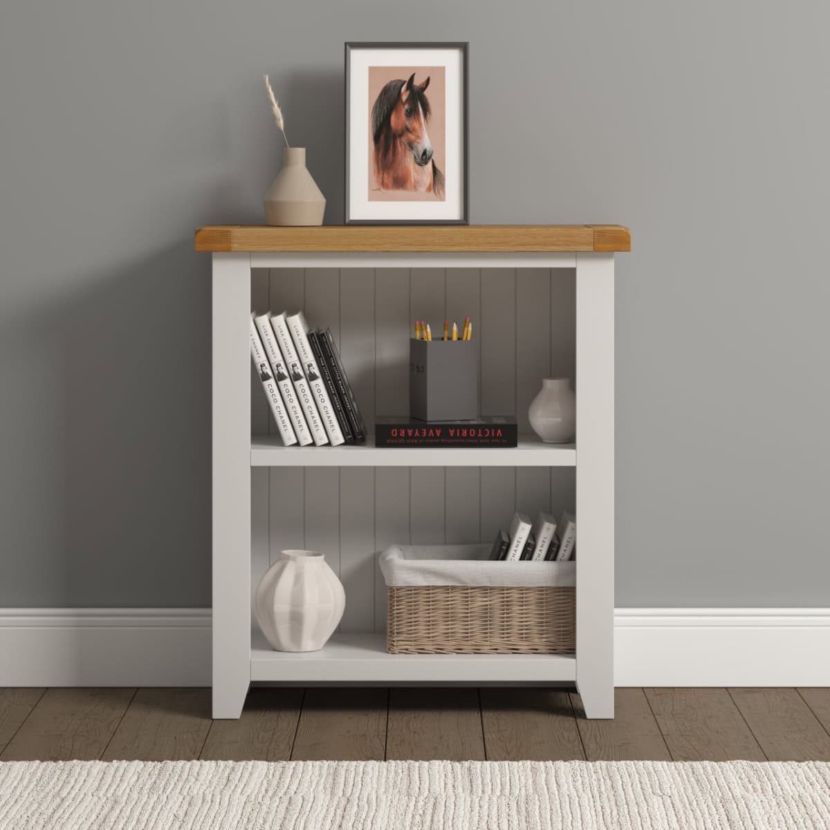 Windsor Low Bookcase – Pebble Grey & Oak