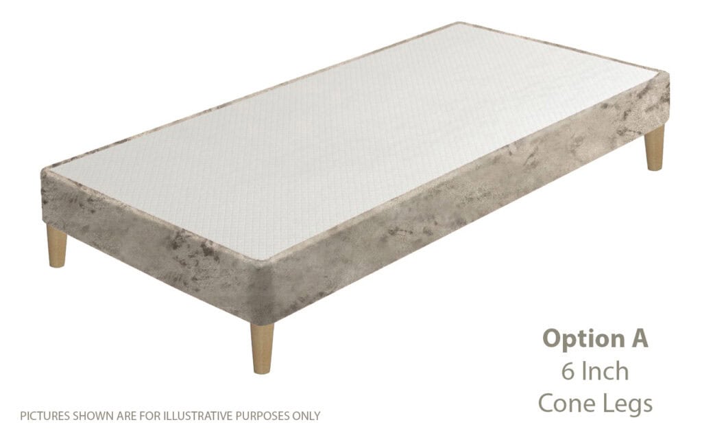 The choice of wooden legs on this base will perfectly compliment the wide range of colours available that will easily compliment your bedroom decor. Available in option A; Maple Coloured Cone leg and option B, a Woodstained Skittle Shape.