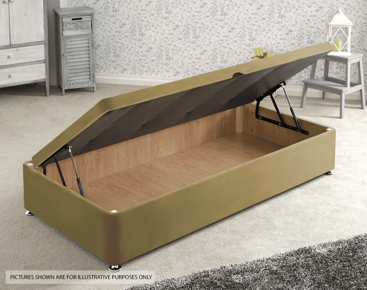 The Ottoman base will have approximately 4 times greater storage than a standard 4 drawer base and has a base board that is crafted from a 8mm melamine faced board that gives a high level of support and is very hard wearing.
