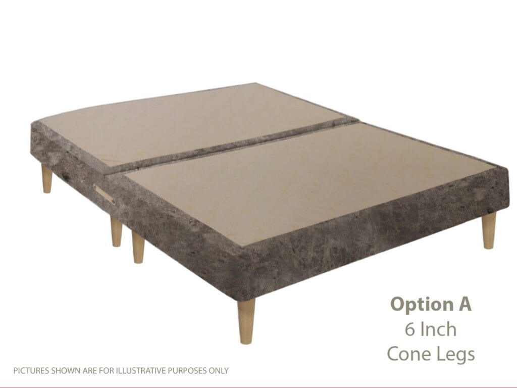 The choice of wooden legs on this base will perfectly compliment the wide range of colours available that will easily compliment your bedroom decor. Available in option A; Maple Coloured Cone leg and option B, a Woodstained Skittle Shape.