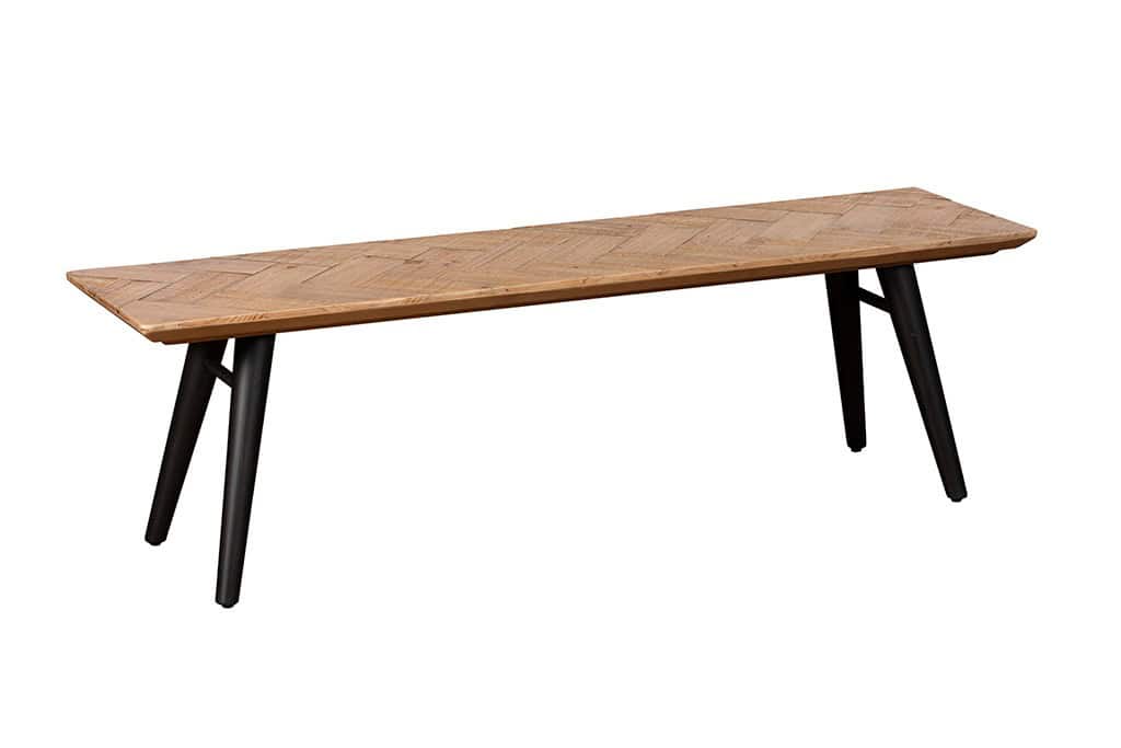 A fusion of sleek design and sustainable craftsmanship, the Franklin furniture range is perfect for the modern home. With striking black legs contrasting against light-oak toned tops, each piece exudes contemporary elegance while seamlessly integrating into any modern living space. Crafted entirely from 100% solid reclaimed timbers, this collection embodies our commitment to environmental responsibility without compromising on style or quality. A standout feature of this range is the meticulously aligned chevrons, ensuring that they seamlessly match a wide range of different interior design choices. This attention to detail elevates the design, creating a cohesive and visually stunning dining experience. This dining bench offers a stylish alternative to a standard dining chair, whilst still providing a stable and steady structure. It can seat up to two people comfortably with a stylish chevron top surface. Click here to view the full collection.