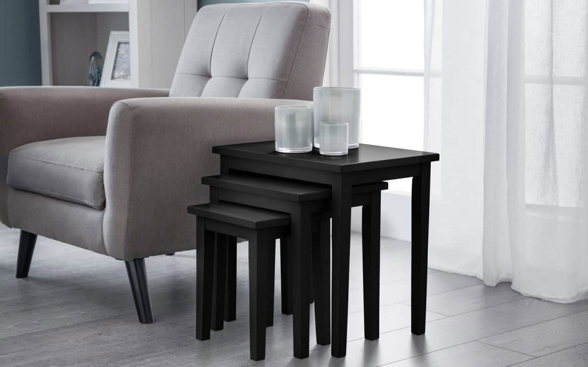 The Clio is a stunning range of nesting tables, ranging over seven different colours. It's timeless design compliments a contemporary or traditional décor choice and it offers a great versatile space saving solution, crafted from solid rubberwood. It consists of three tables of varying sizes, which slot together when not in use, each with hard-wearing and durable tops that make for great decorative surfaces. Due to it's space saving qualities, it's great for those with smaller space, such as apartments, to expand the surface area available only when you need. It's available in black, grey, mahogany, pure white, white and natural oak, grey and natural oak and plan natural oak. Click Here to see the range of different colours