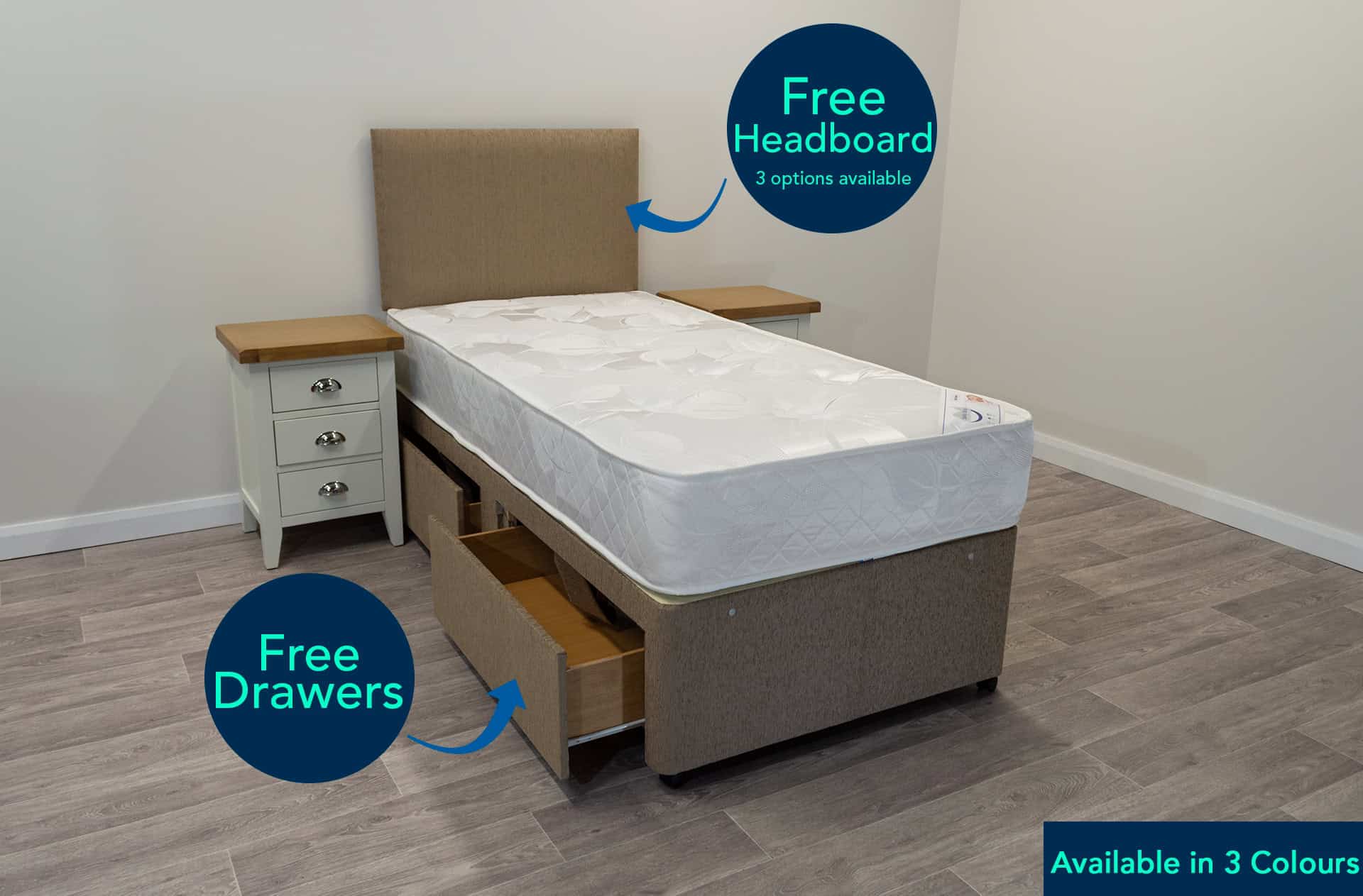 3ft Gold Dream Mattress with 2 FREE Drawers Base & Headboard