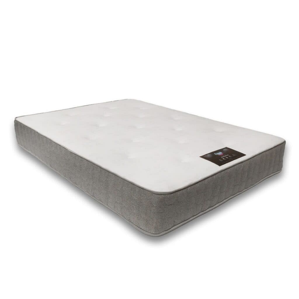 The Ambiance is a double-sided Bonnell spring mattress. A check grey border fabric is matched with a floral grey panel fabric to give an overall attractive appearance. It features natural fillings for a softer and more comfortable feel with a hand tufted top to keep the fillings and springs in place and creating a smoother sleeping surface.