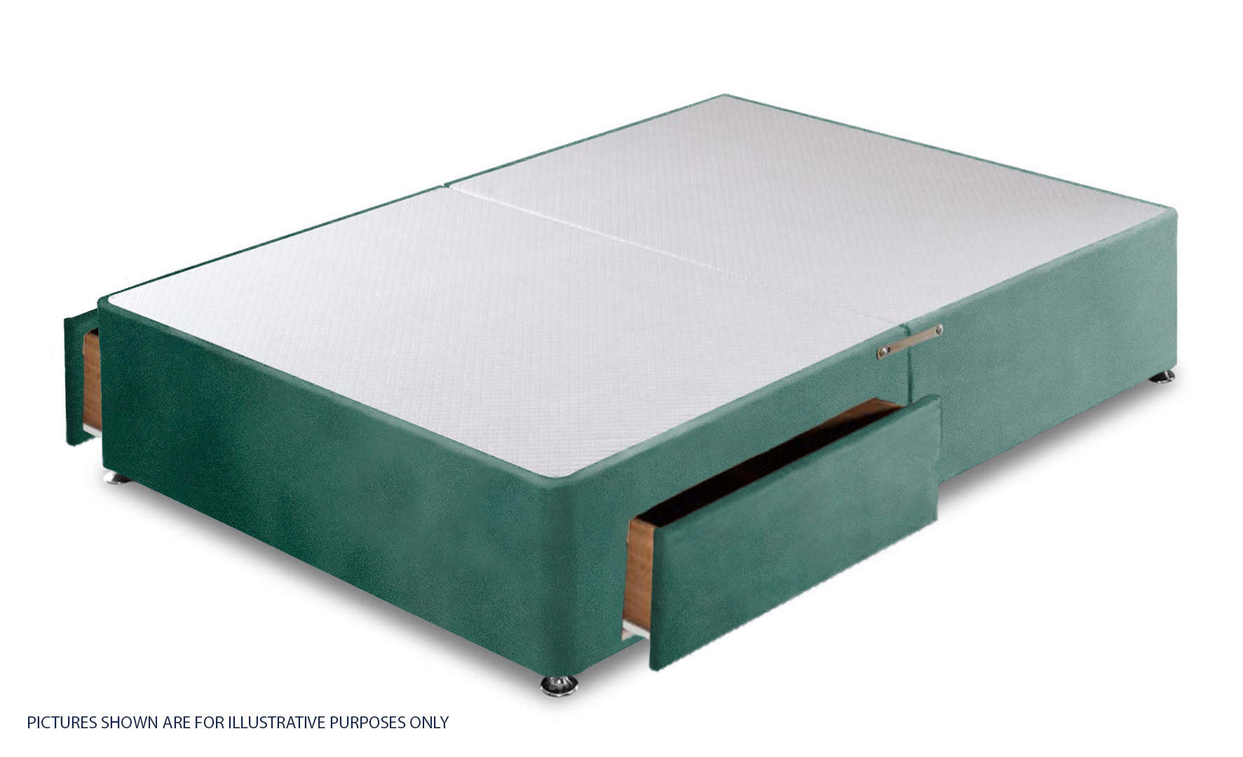 Add some luxury to your bedroom with a platform top base that is available in a wide range of stylish, contemporary colours! It is constructed from quality timber and is upholstered in an attractive soft velvet fabric and comes with some extra storage. Designed with a range of colours that will coordinate with your bedroom, this stylish 2 drawer base comes with 2 pull out drawers for additional storage under the bed.