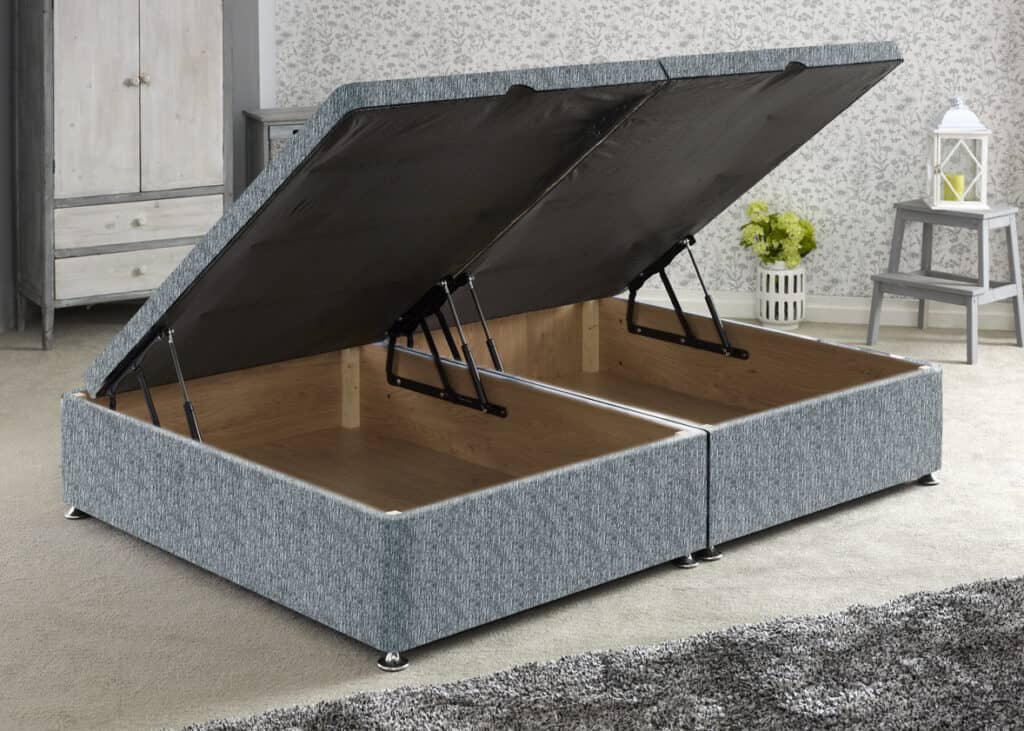 The Ottoman base will have approximately 4 times greater storage than a standard 4 drawer base and has a base board that is crafted from a 8mm melamine faced board that gives a high level of support and is very hard wearing.
