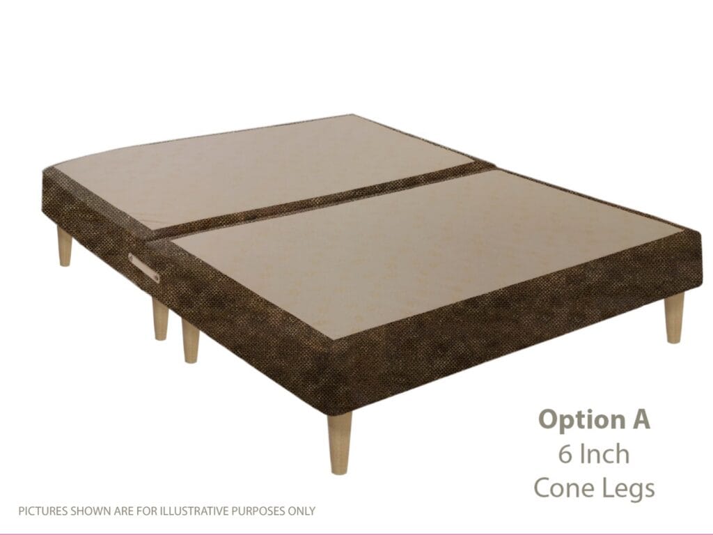 The choice of wooden legs on this base will perfectly compliment the wide range of colours available that will easily compliment your bedroom decor. Available in option A; Maple Coloured Cone leg and option B, a Woodstained Skittle Shape.