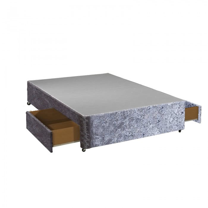 Add some luxury and 'Glitz' to your bedroom with a platform top base that is available in a wide range of stylish, contemporary colours! It is constructed from quality timber and is upholstered in an attractive crushed velvet fabric and comes with some extra storage. Designed with a range of colours that will coordinate with your bedroom, this stylish 2 drawer base comes with 2 pull out drawers for additional storage under the bed.
