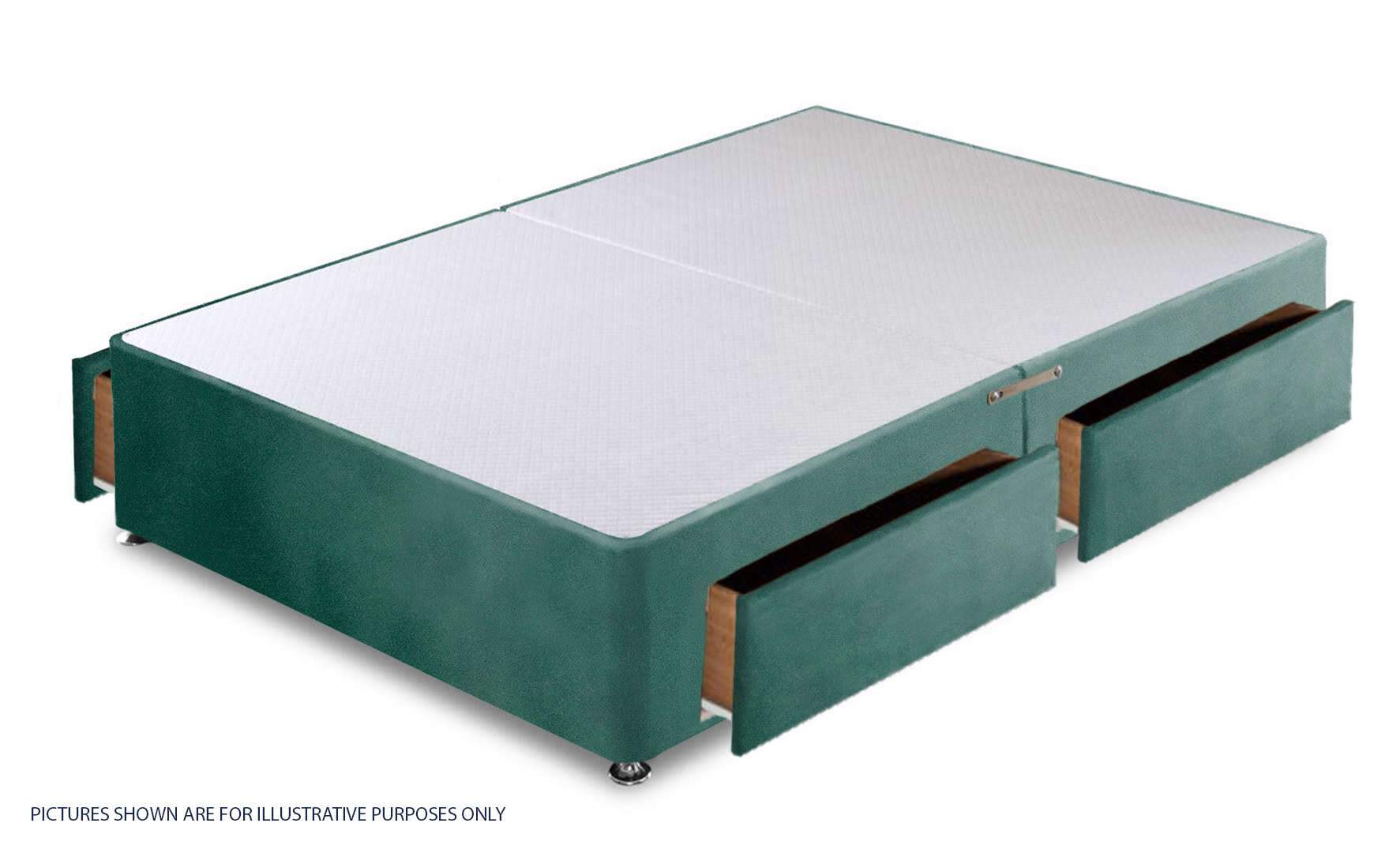 Add some luxury to your bedroom with a platform top base that is available in a wide range of stylish, contemporary colours! It is constructed from quality timber and is upholstered in an attractive soft velvet fabric and comes with some extra storage. Designed with a range of colours that will coordinate with your bedroom, this stylish 4 drawer base comes with 4 pull out drawers for additional storage under the bed.
