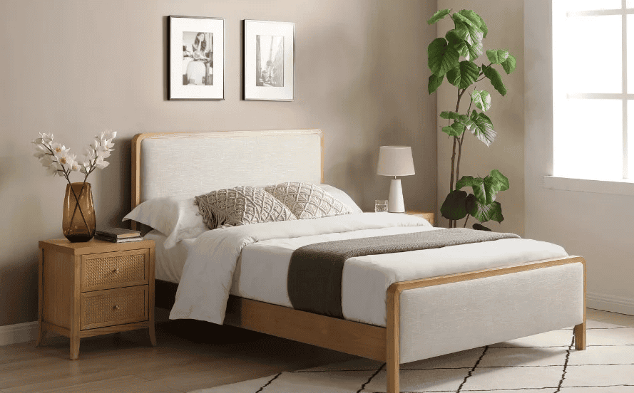Archie 5ft Upholstered Headboard Bedframe – Oak