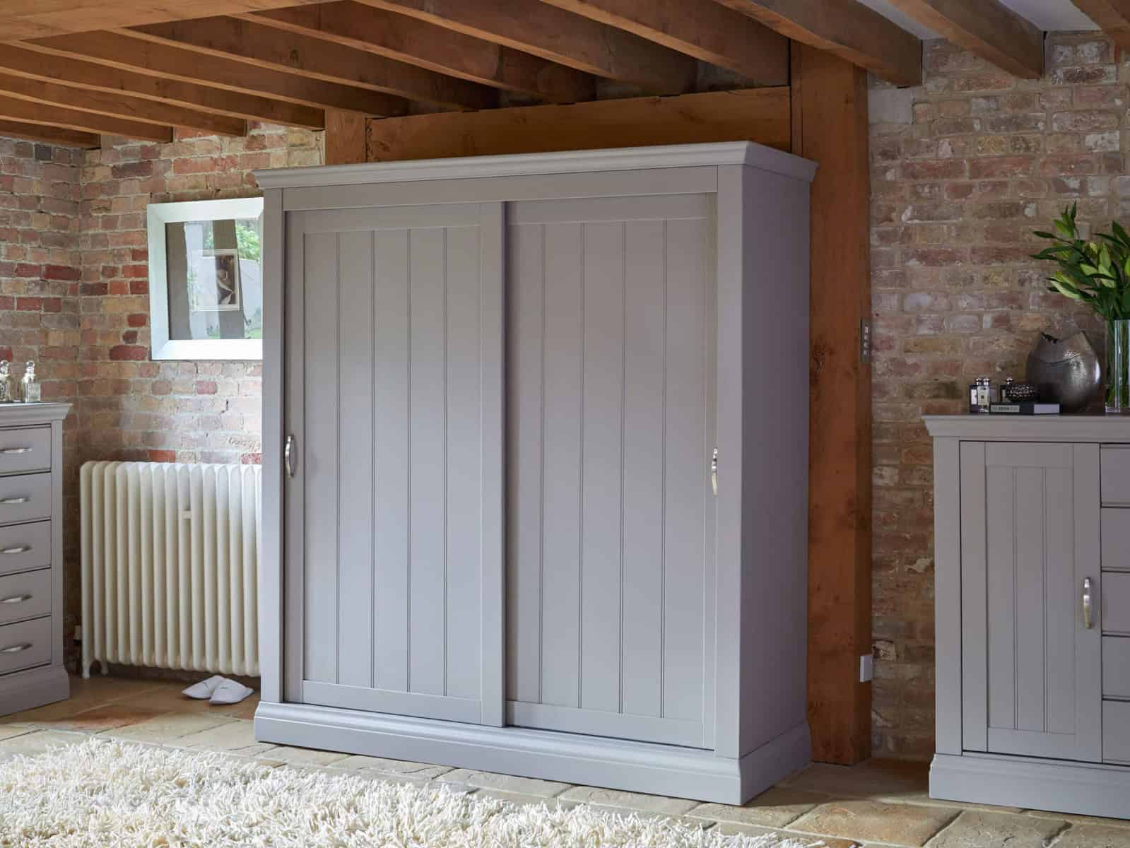 The Valencia Bedroom range with its distinguished appearance is sure to add character and style to any bedroom with a lavish combination of classic and contemporary features! It's been constructed from solid wood and MDF that makes for a robust and sturdy structure, adding durability and longevity to the wardrobe. The Valencia Sliding Door Wardrobe comes with two doors that slide open to an ample hanging space, perfect for hanging up all your clothes. The grey painted finish blends effortlessly with a wide range of different colour schemes and décor themes, giving a fresh look which will stand the test of time.