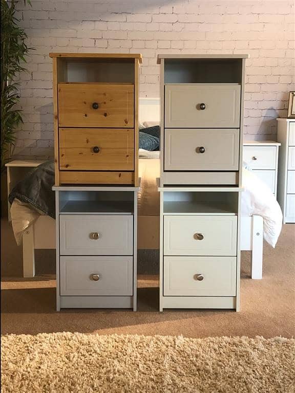 **Please Note: The image shows a 2 drawer 1 shelf model in the entire range of colours for illustration purposes only! This model will come in white with 2 DRAWERS ONLY!**