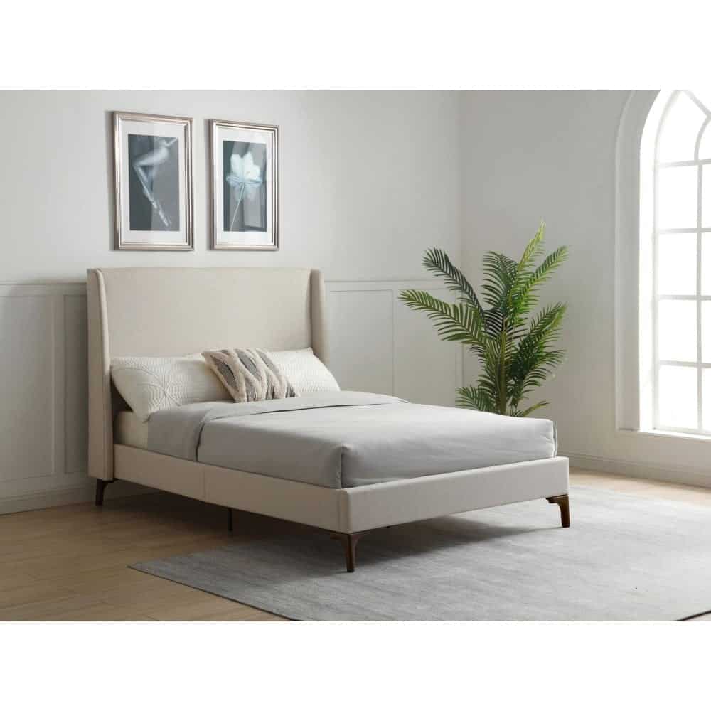 The Denver Bedframe is a gorgeous modern staple for any bedroom, upholstered in a stone coloured textured weave fabric that adds a contemporary charm and sophistication to the bedframe. The beautiful winged headboard features a plain design but it still makes a bold statement in any bedroom and this bedframe is available in three different sizes.