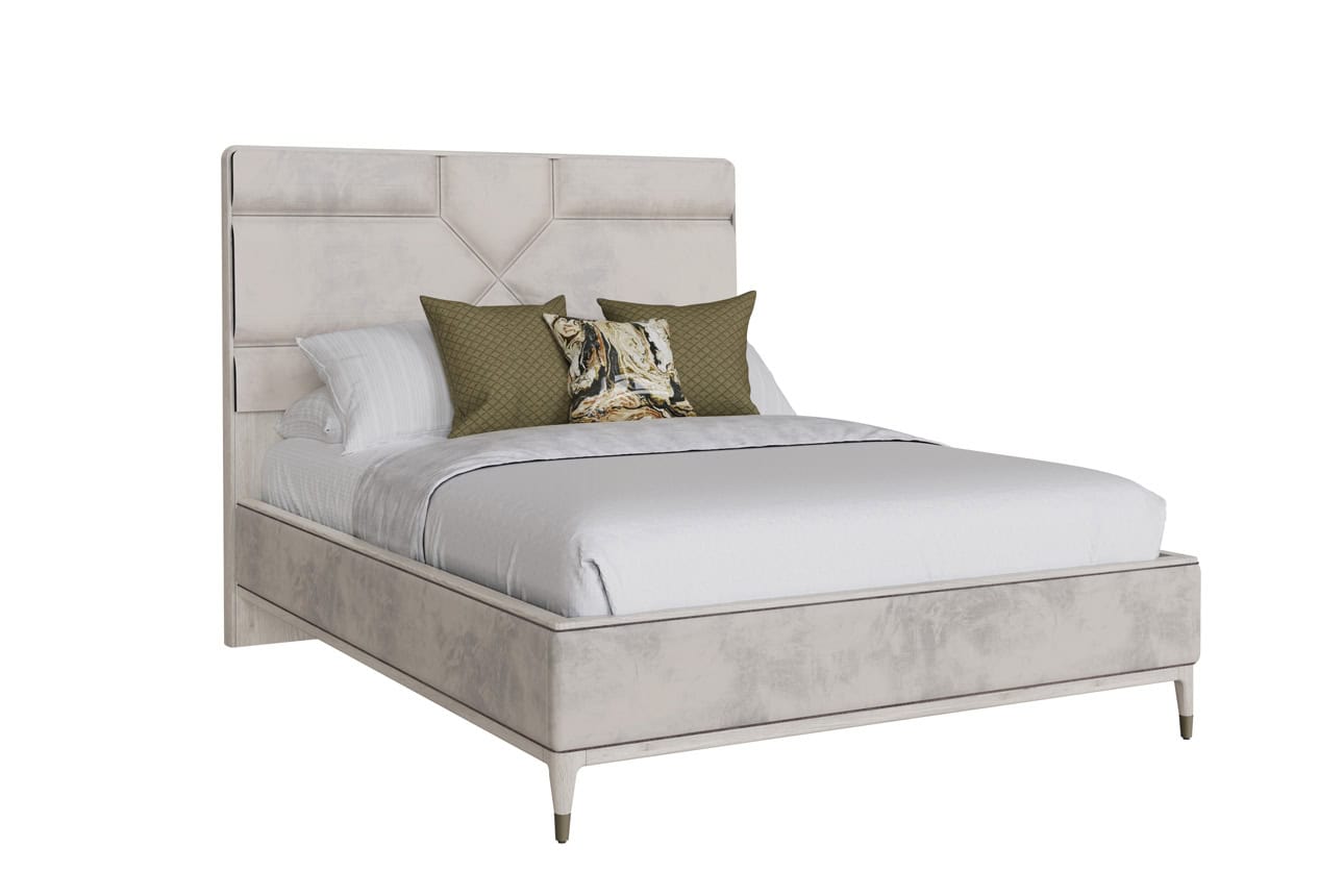 The Diletta Bedframe is a stunning statement piece for any modern bedroom, upholstered in a beautiful stone coloured velvet that is sure to turn heads and blend effortlessly with a wide range of different décor themes and colour schemes. The geometric design in the headboard gives the bed a art-deco touch, enhancing the contemporary charm of the bedframe.