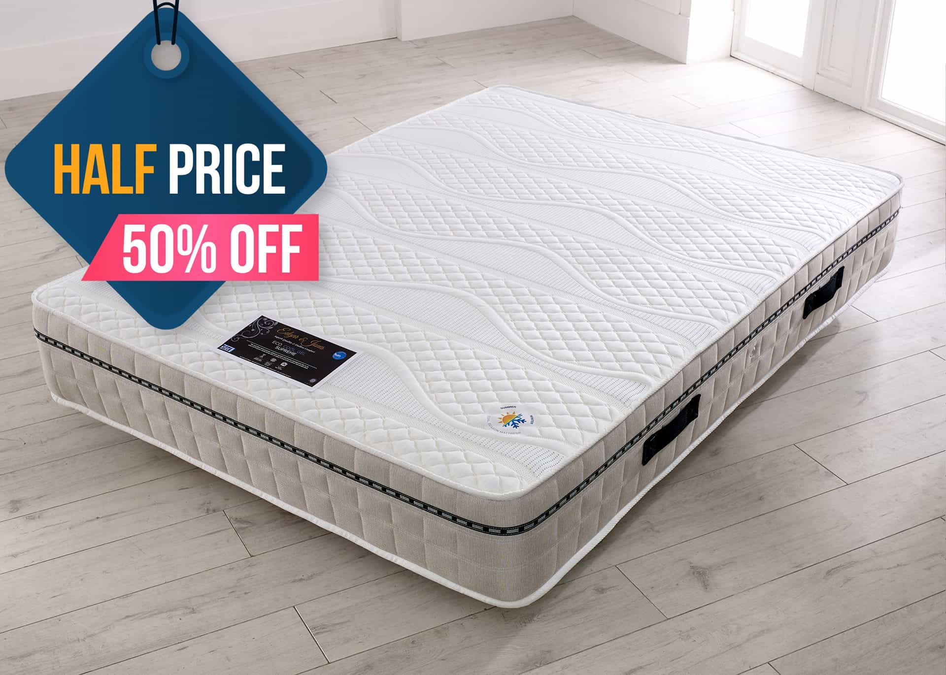The Eco-Cool Gel Supreme Firm Mattress from Edgar & Jones is an outstanding hand made mattress with an impressive combination of fillings that produce a high level of comfort and support! Crafted using a 12.5G open coil spring unit with wire frame it provides consistent body support from head to toe. Allowing aeration and thermo management Cool Blue Foam is an excellent, open cell structure filling that gives this mattress dual season elements. Not only does it contour to individual silhouettes it adapts to your body temperature - making you cooler in summer and warmer in winter - enhancing your comfort.