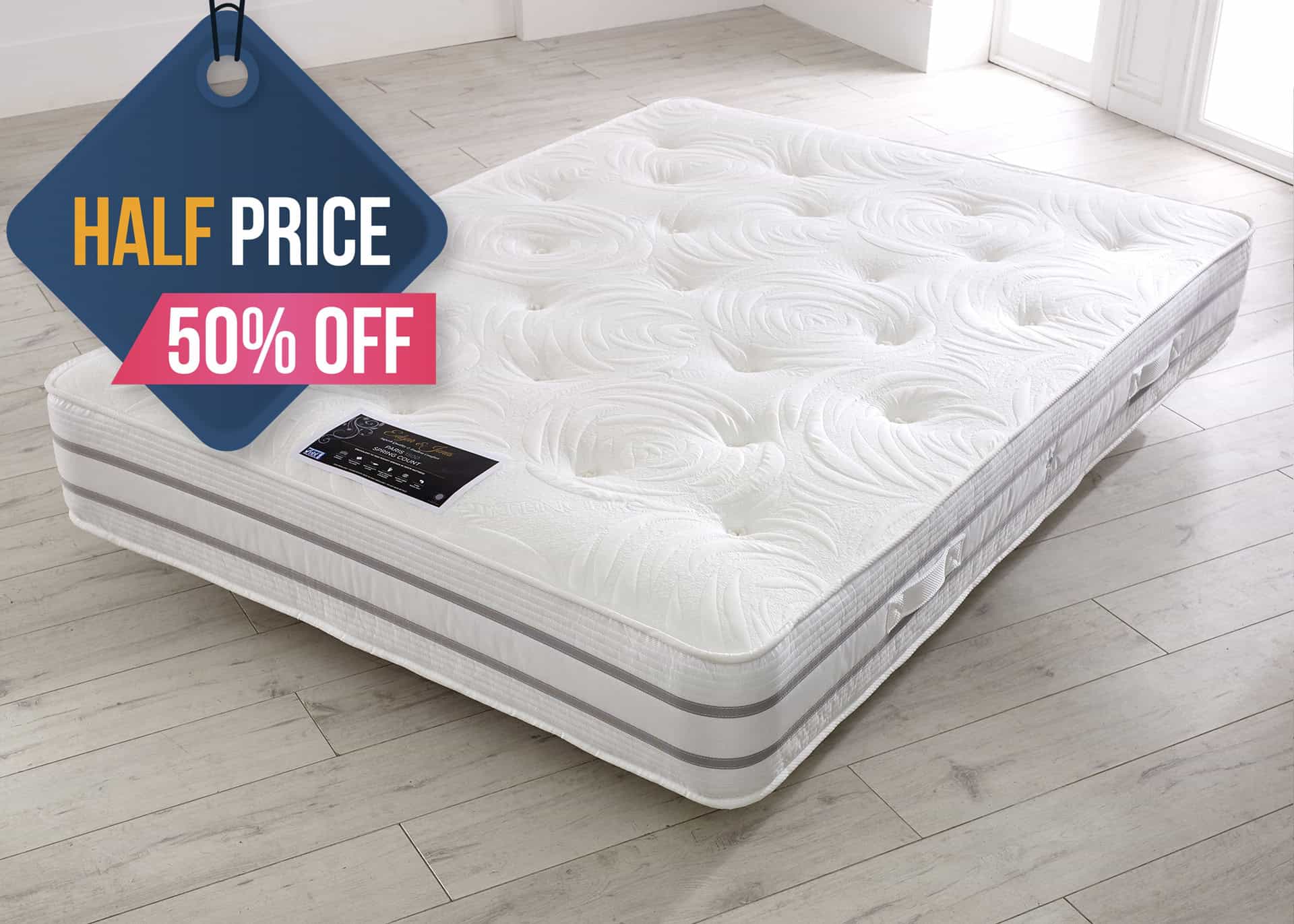 • Pocket Sprung: This mattress contains pocket springs. Pocket springs are individually wrapped springs that move together independently of each other, yielding to where pressure is most exerted and isolating movement, which differs from traditional open coil mattresses. Pocket springs are particularly great for providing pressure point relief as you sleep, dispelling any discomfort throughout the night and allowing for a deeper and more restful sleep. Additionally, they provide excellent support – ideal for those who require extra spinal support during the night.