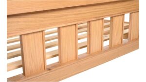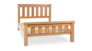 Bring a sense of calm and character to your bedroom with the Newbury range. Finished in a beautiful light oak, each piece showcases subtle attention to detail, including distinctive beading for a touch of traditional texture. This bedframe features a classic slatted headboard with a matching footboard, inspired by traditional shaker styling and enhanced with squared post legs for a sturdy, elegant finish. Expertly crafted from strong, high-quality hardwood, it offers a robust and durable structure designed for long-lasting use. The solid construction keeps the frame stable and steady, helping to minimise motion disturbance for a more restful night’s sleep. With its versatile oak finish, the Newbury bedframe blends effortlessly with a wide range of colour schemes and décor styles.