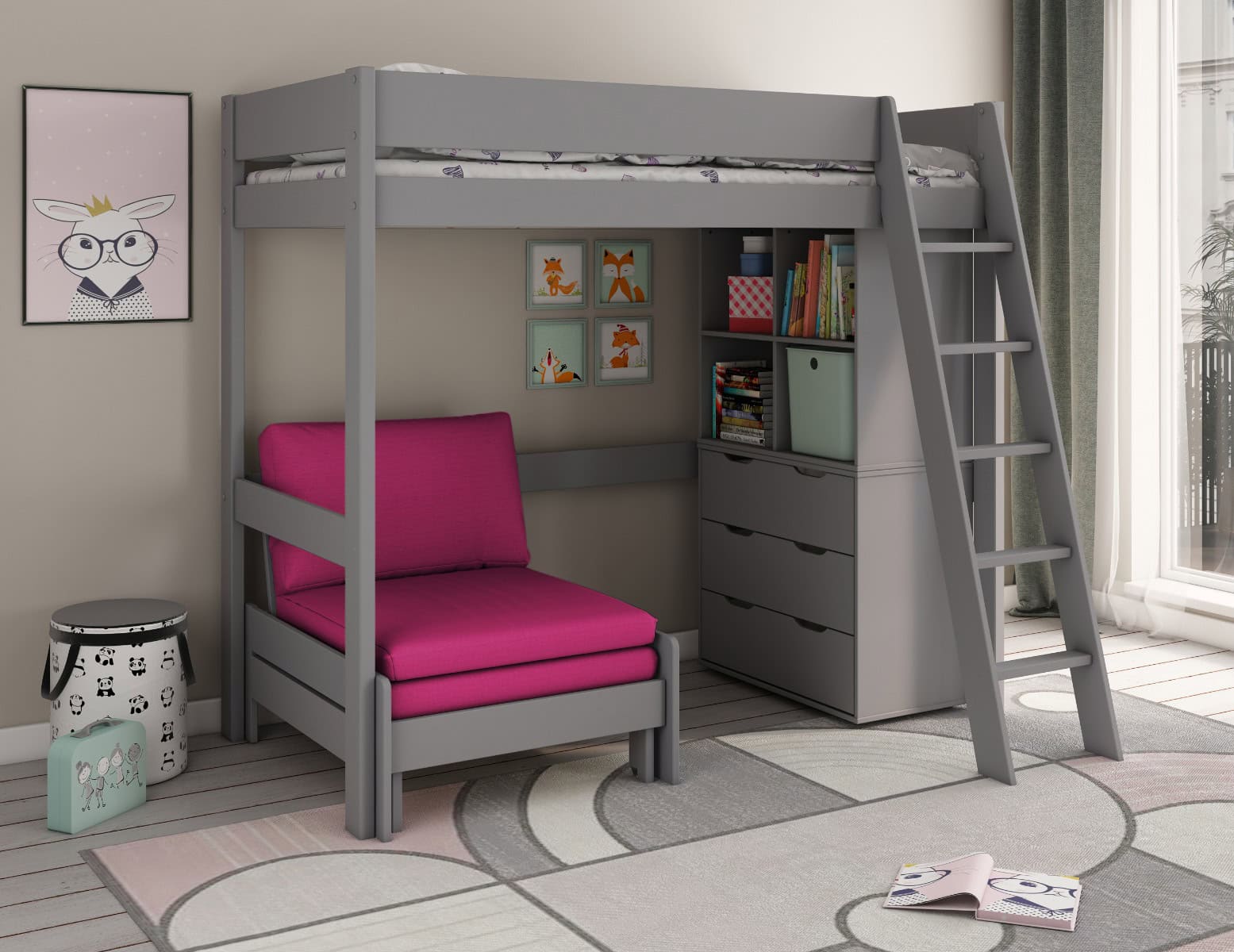 Kids Avenue Estella Grey Highsleeper with Pink Sofa Bed & Storage