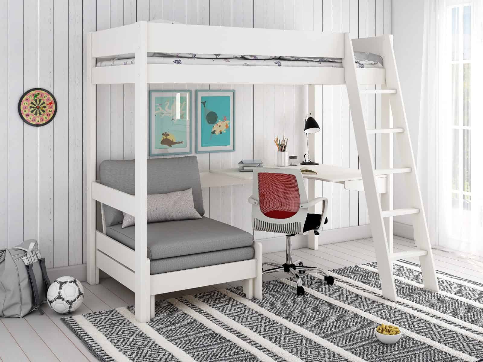 Kids Avenue Estella White Highsleeper with Silver Sofa Bed & Desk