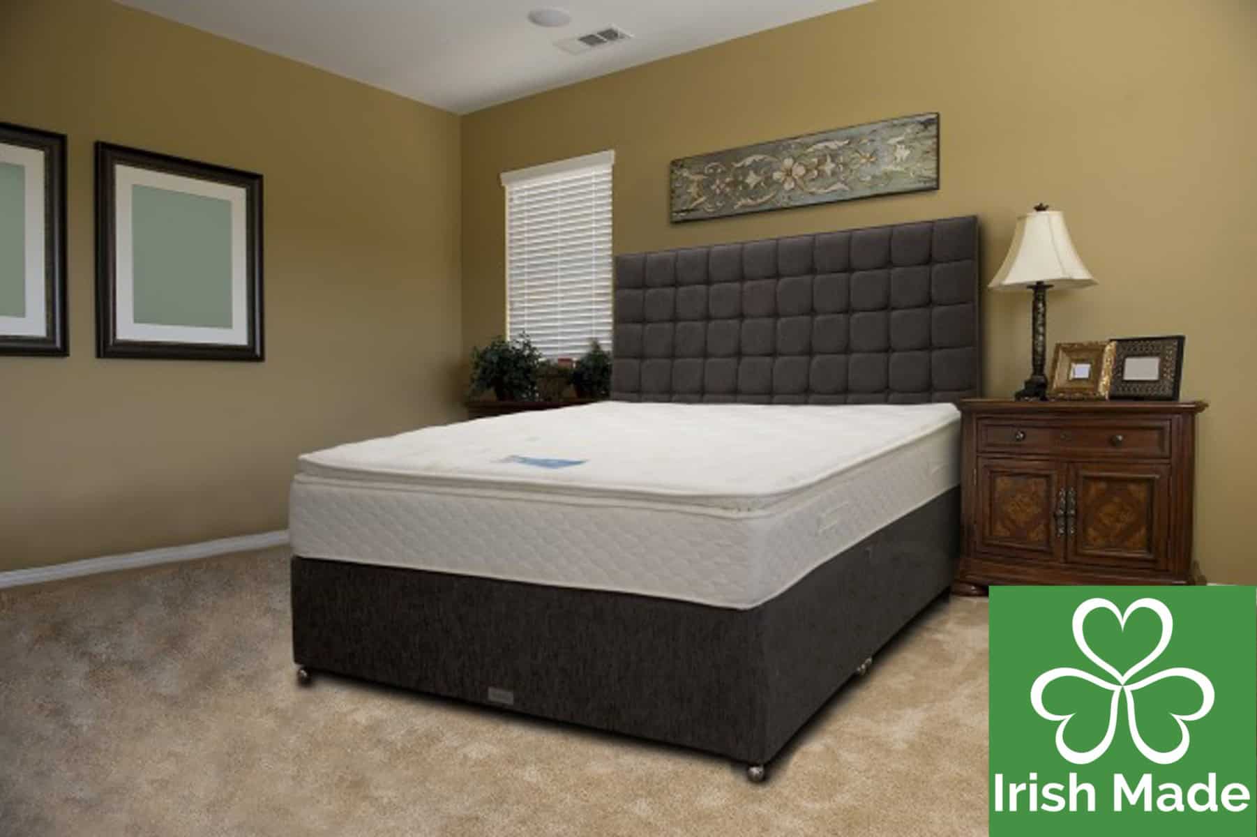 This bed comes as a standard divan bed with TWO DRAWERS. The base has been constructed from solid and strong materials and timber for a robust and sturdy structure that adds reliability and durability. It sits on castors to provide easy movement across the floor. The base has been upholstered in high quality fabric that keeps the base looking fresher for longer and adds a touch of style to the divan. Headboard and accessories not included in the price but may be purchased if you wish. You can find our range of King Koil headboards in our headboard section. This base comes with TWO DRAWERS, placed on the same side with one at the top and the other at the bottom side of the base. A non-drawer and ottoman version can be found on the website. This divan base is delivered in one piece.