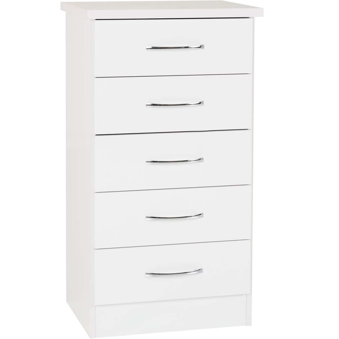 Nevada 5 Drawer Narrow Chest – White Gloss