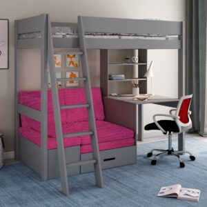 Kids Avenue Estella Grey Highsleeper with Pink Sofa Bed